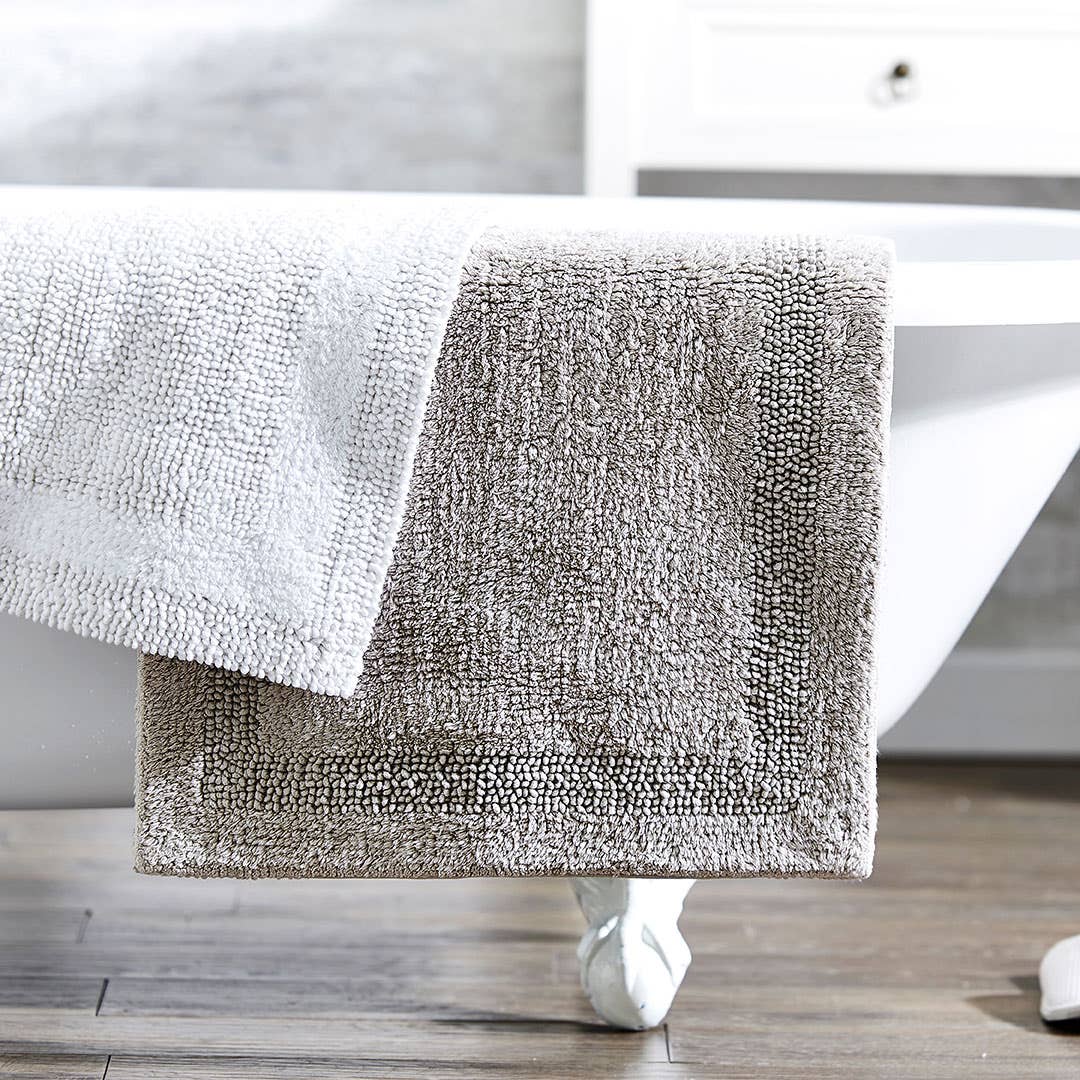 As practical as it is stylish, the Braxton Stone Bath Mats are a timeless essential for your bathroom/toilet area. Made from 100% cotton, these bath mats are soft and absorbent, all while providing comfort underfoot. Fully reversible with a cut loop border and solid body detail, this classic style is available in a range of colours to suit any bathroom style.