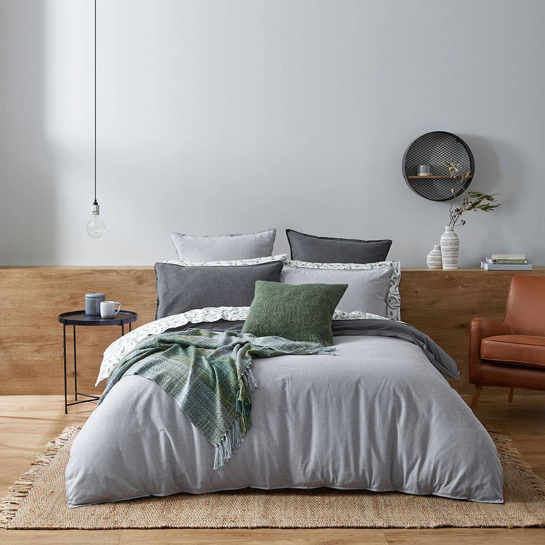 Bring casual luxury to your bedroom with the Lusso quilt cover in charcoal. Woven from a cotton viscose blend that has been brushed for extra softness, this quilt cover is perfect for creating a cosy and comfortable bed. Complete the look with coordinating pillowcases.