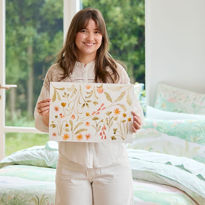 Natalie was inspired by layers of flowers and the beautiful colour combinations you’d find in a meadow. I wanted to create a design that felt lively yet dreamy, like sleeping amongst wildflowers.