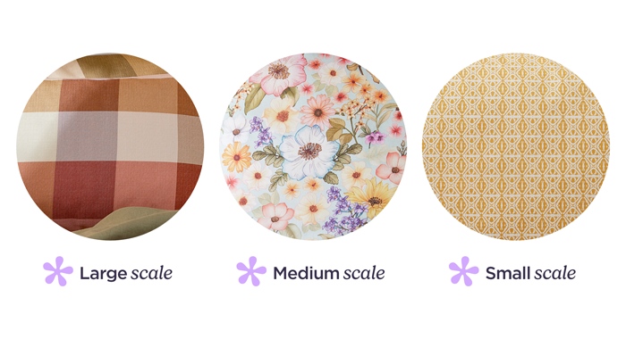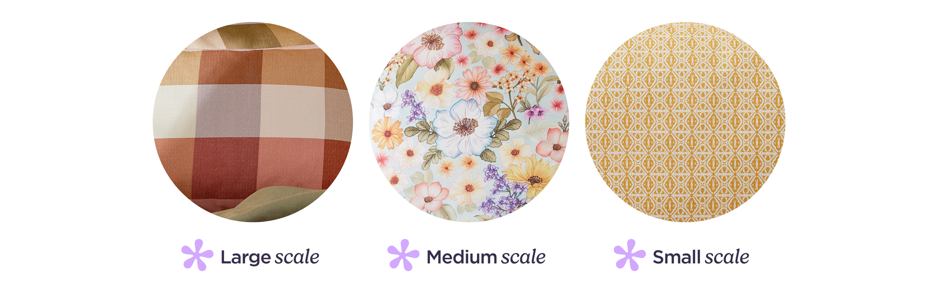When pairing different patterns, playing with scale can result in a sense of balance and harmony. Layering large-scale patterns with small and medium-scale patterns will ensure that they complement each other, rather than clashing or competing.