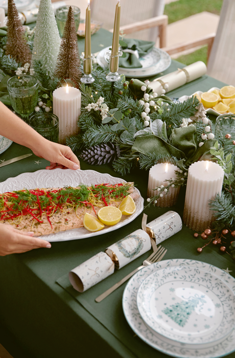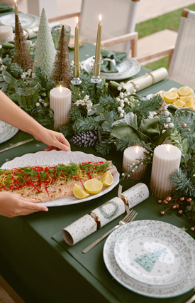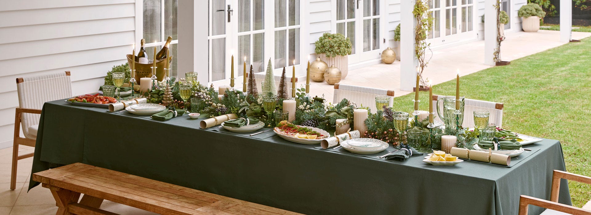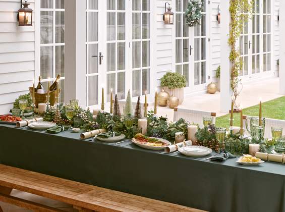 Take the celebrations outside with a beautiful alfresco table. Add a touch of Christmas magic with soft twinkling lights and glistening decorations.