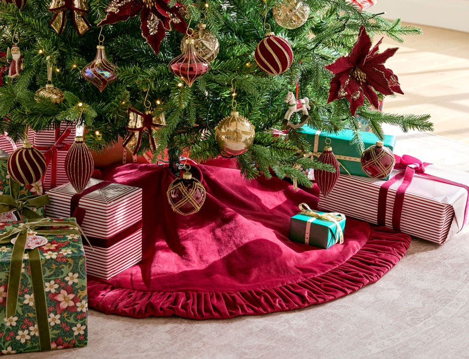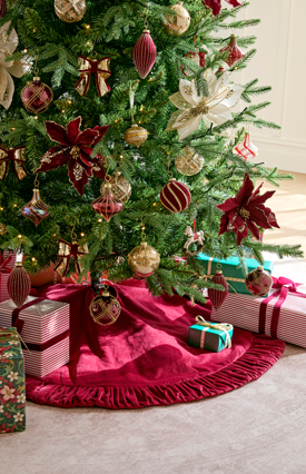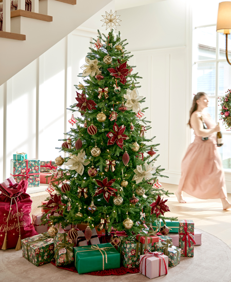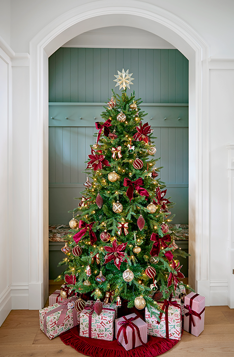 Rich cherry reds and velvet textures pair joyously with deep greens of pine, holly and mistletoe. Perfect for creating a traditional look with an elevated feel.