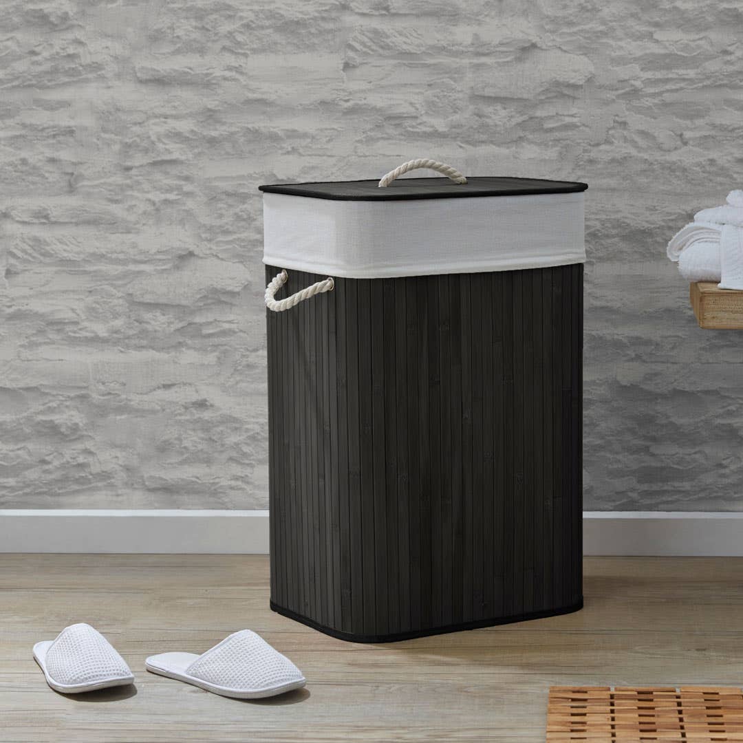No bathroom or laundry is complete without the black Collapsible Bamboo Hamper with Rope Handles.Made from bamboo with a fabric inner, this stylish hamper will complement any style.