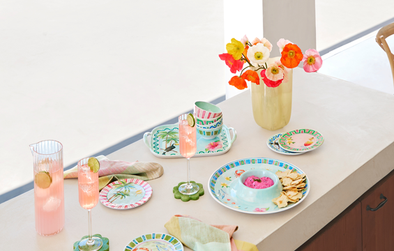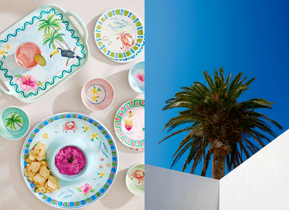 Create your own tropical oasis. Vibrant shades and summer-inspired patterns bring a playful touch to days in the sunshine.