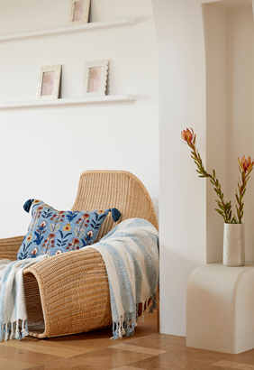 Take some time to unwind with calming additions to your bathroom, inspired by ocean hues. Indulge in the luxury of soft textures and beautiful woven details.