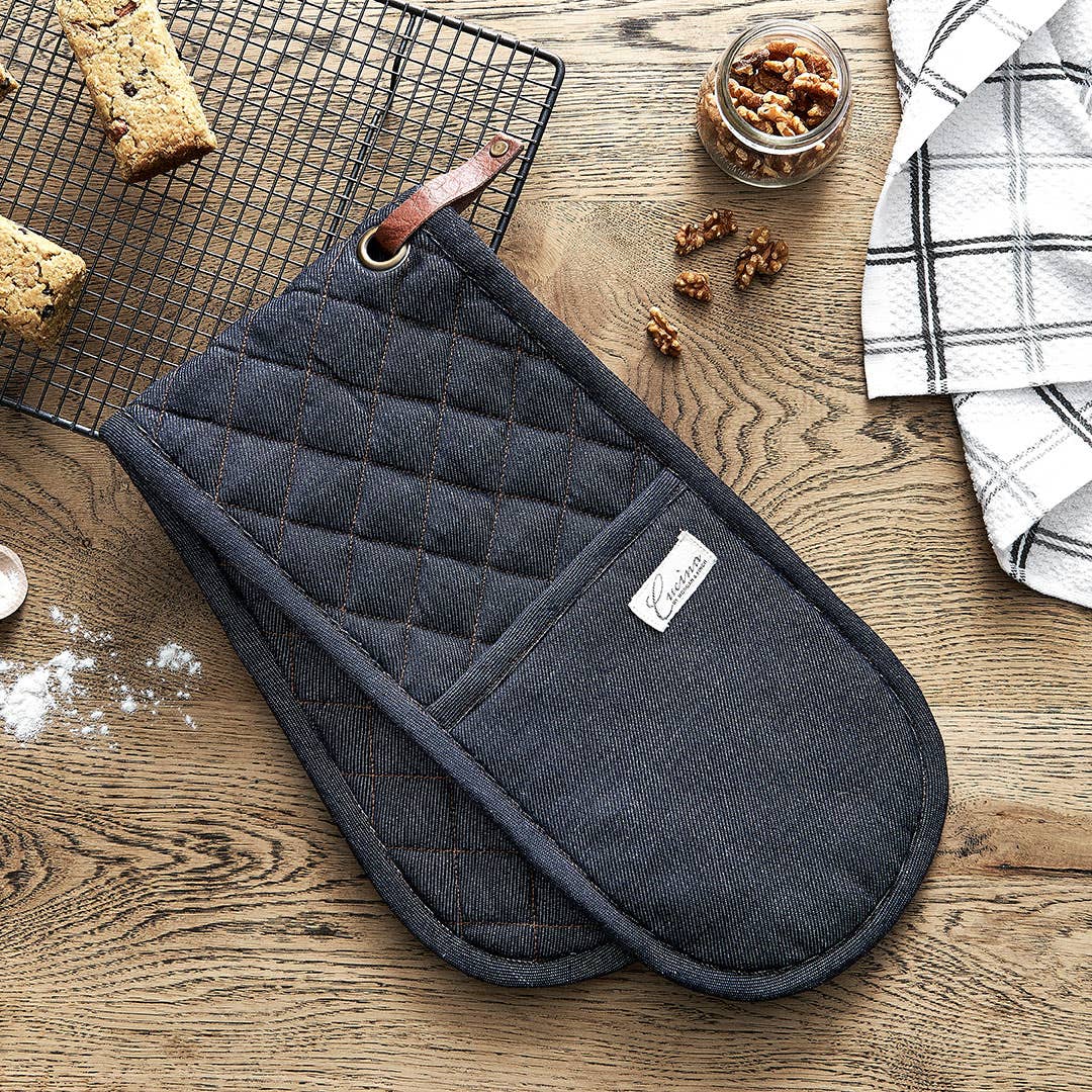An everyday kitchen essential, the Denim Oven Glove provides heat protection for your hands while offering style for your kitchen.