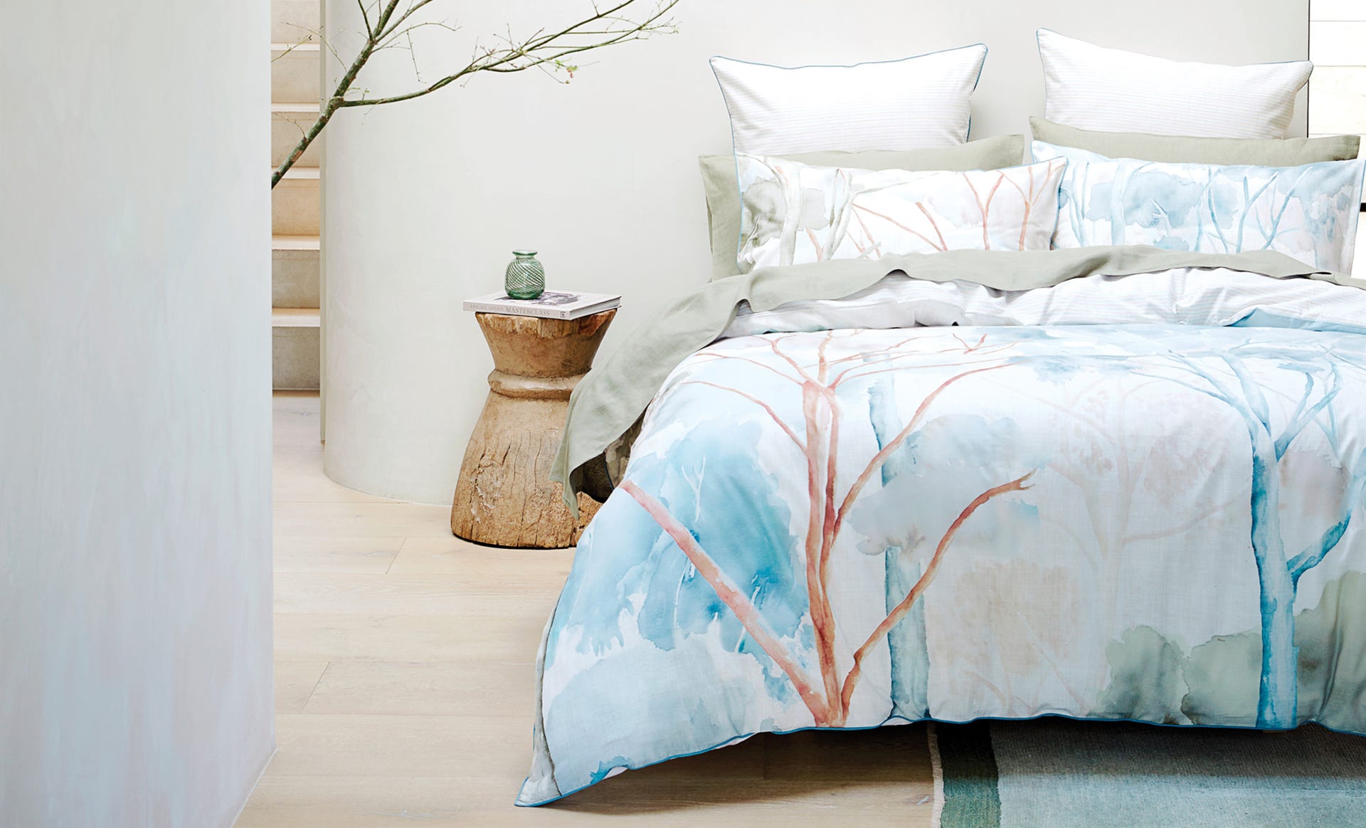 Brushed and finely woven fabrics usher in a sense of calm. Classic patterns and prints bring comfort and warmth to any space.